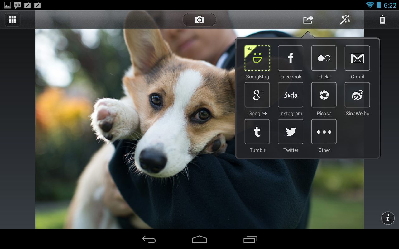 • Sharing : além de compartilhar no Facebook, Twitter, Sinaweibo, Google+, Instagram, Photobucket, Picasa, Tumblr, YouTube e Flickr, os usuários podem agora compartilhar com outros serviços através de aplicativos de apoio instalados no dispositivo
